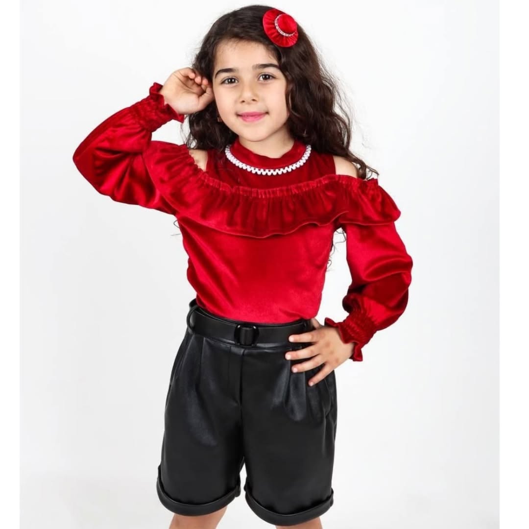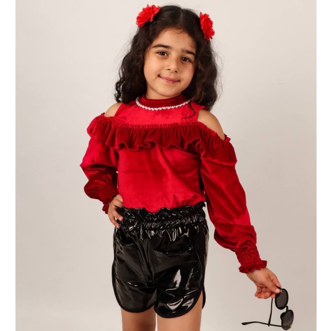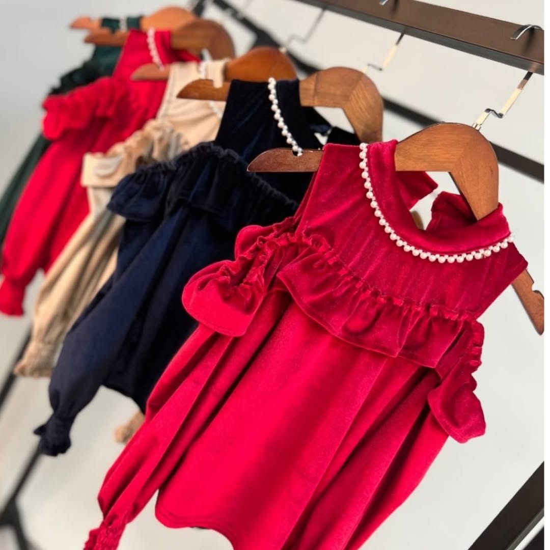بلوز مخمل جنس بلوز مخمل براق مخمل ریزش ندارد قسمت آستین کشدوزی شده قسمت یقه مروارید دوخت شده رنگبندی: مناسب سن ۱۲ سال