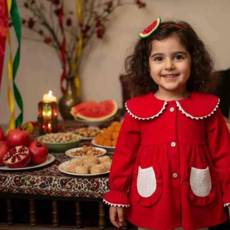 یلدایی قشنگتر از این کجااا دیدین جنس پارچه پشمی بدون رنگدهی و آبرفت سایز ۱.۲.۳.۴ از ۱/۵سال تا ۴سال