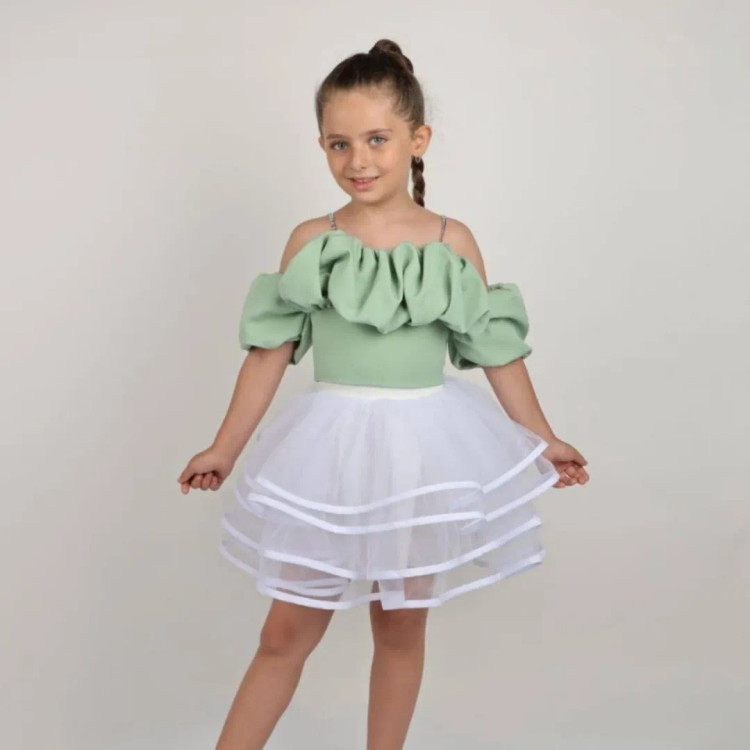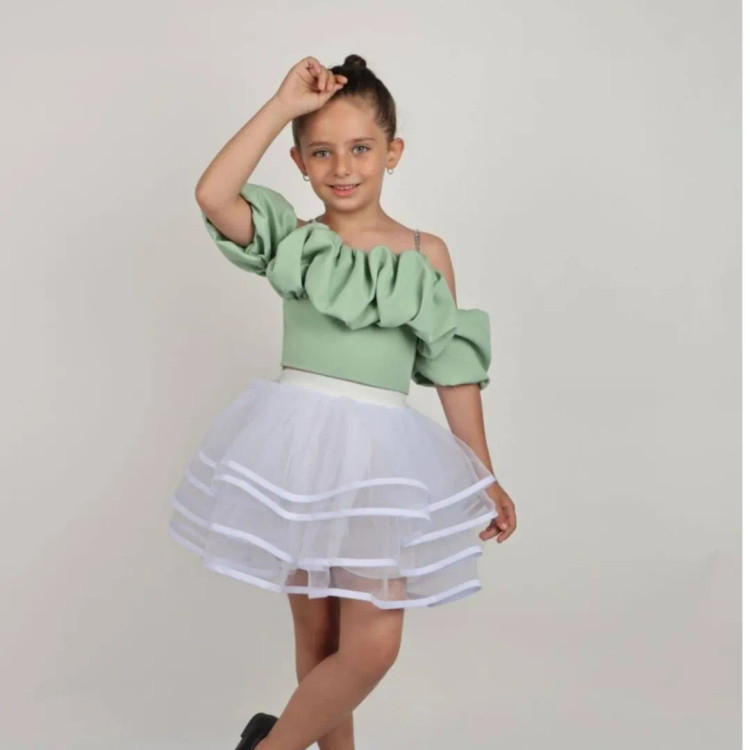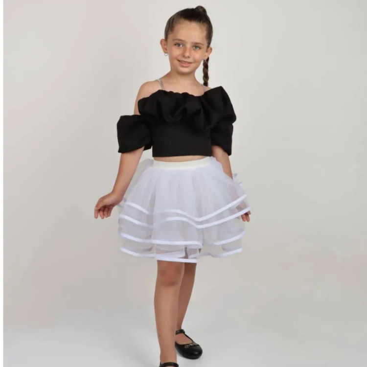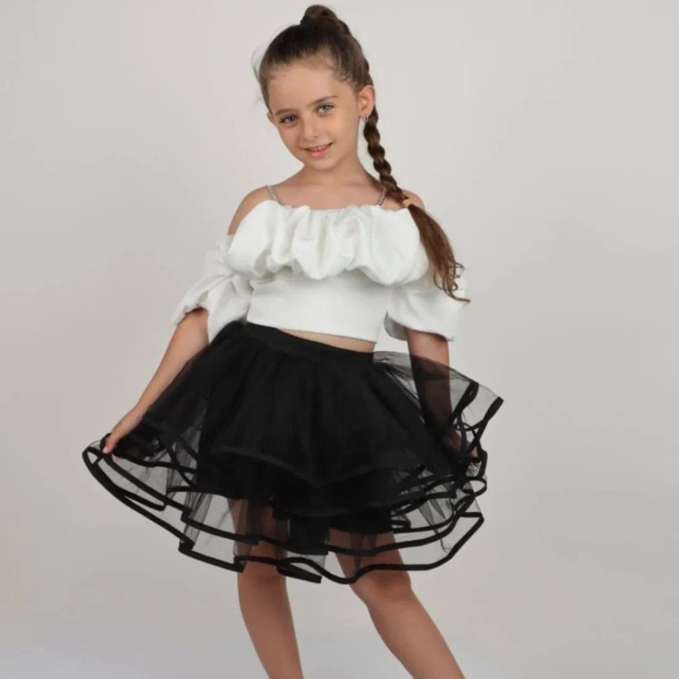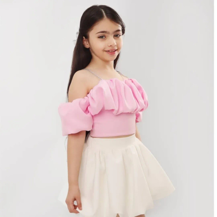 کراپ مجلسی دخترانه استین پفی ژاوین