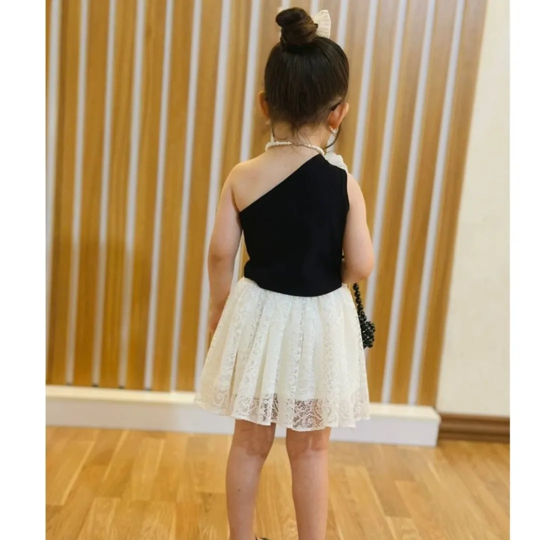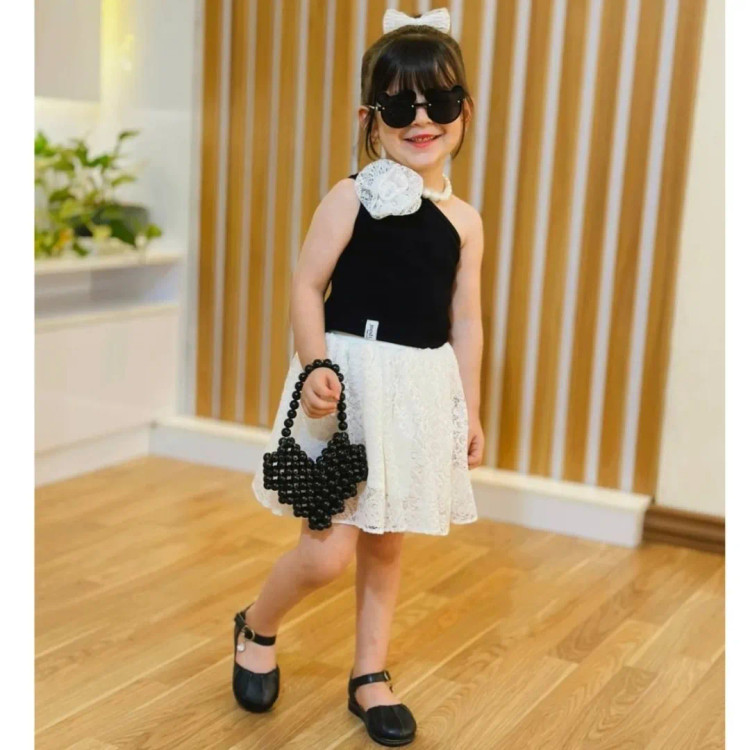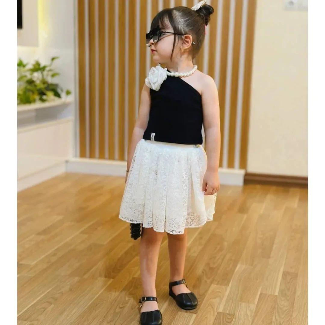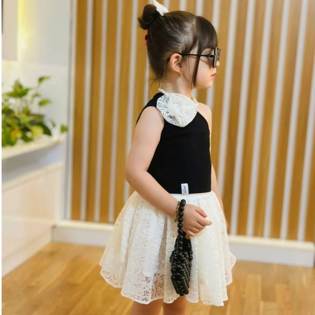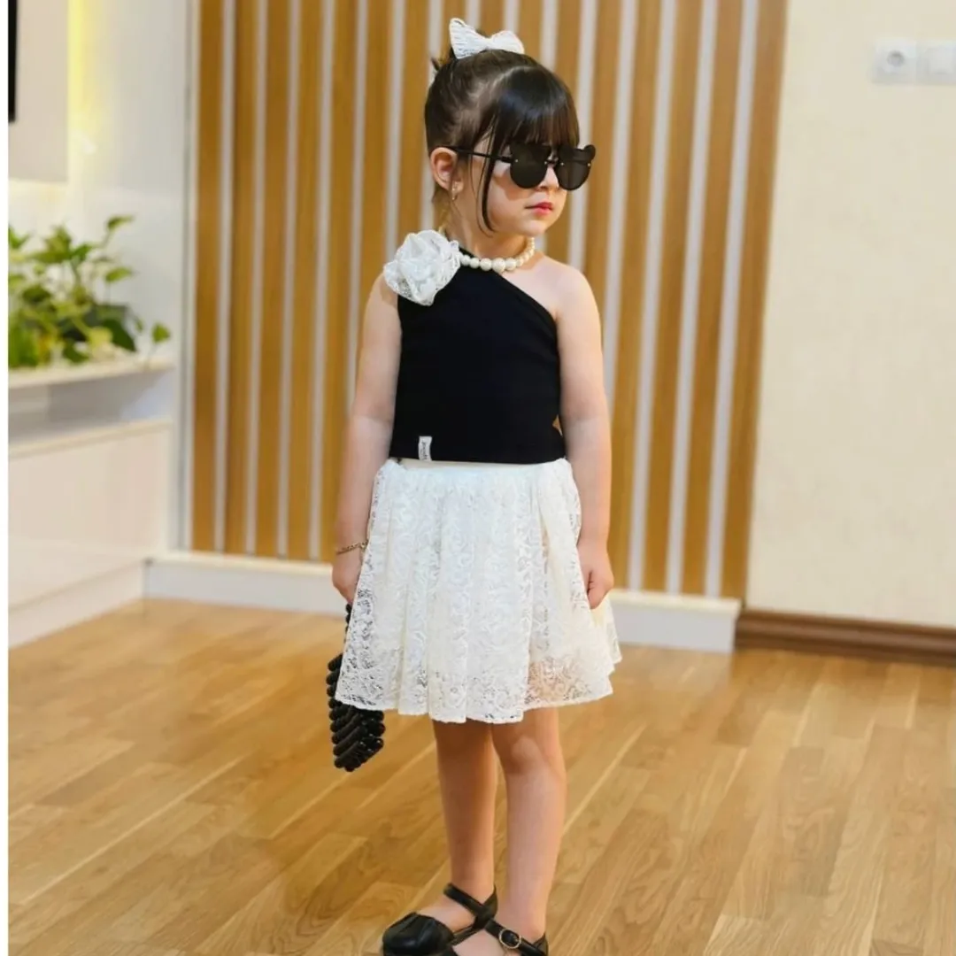 تاپ رومی مشکی و دامن تور دانتل سفید