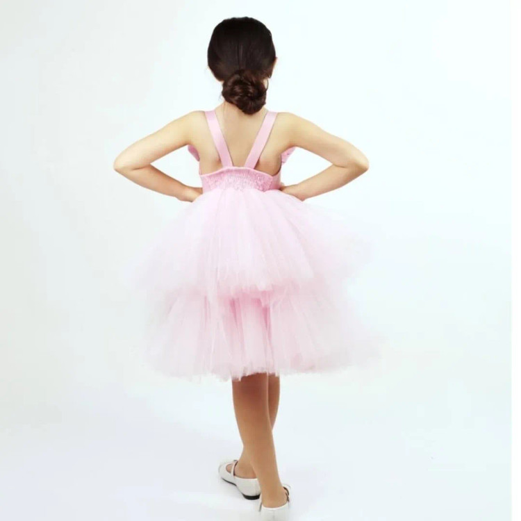 سارافن پرنسسی گیلدا با جنس بالاتنه ساتن و پارچه ساتن امریکایی، دارای تور مژگان نرم و لطیف. تمام استر جنس استر تافته برای پف پاپیون و استفاده از پشم شیشه در طراحی. اکسسوری شنل پاپیون و رنگبندی متنوع.