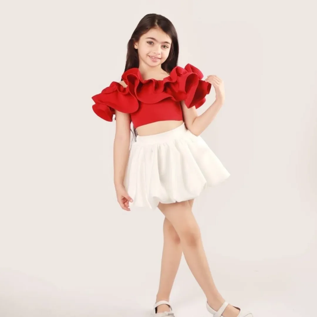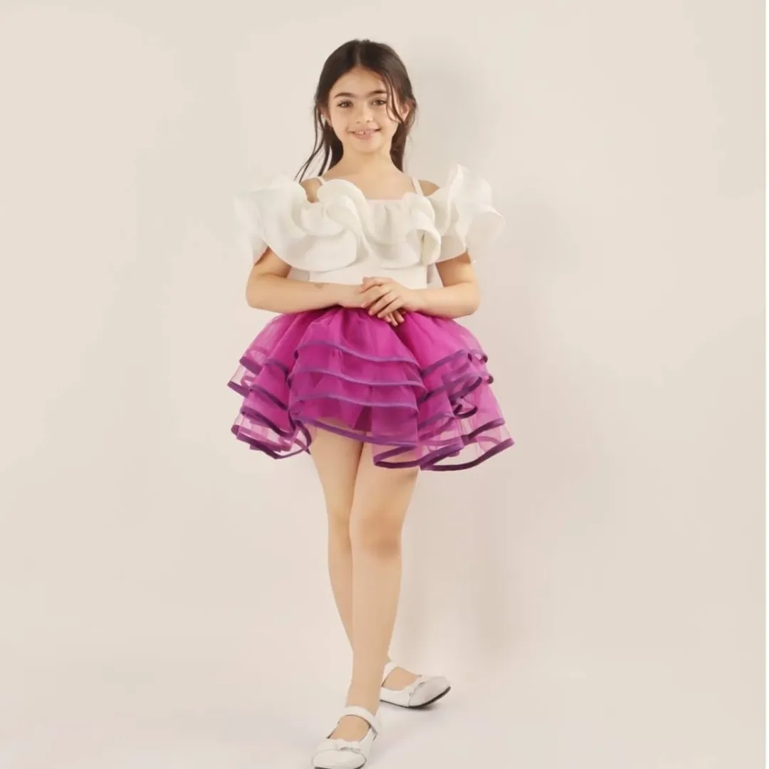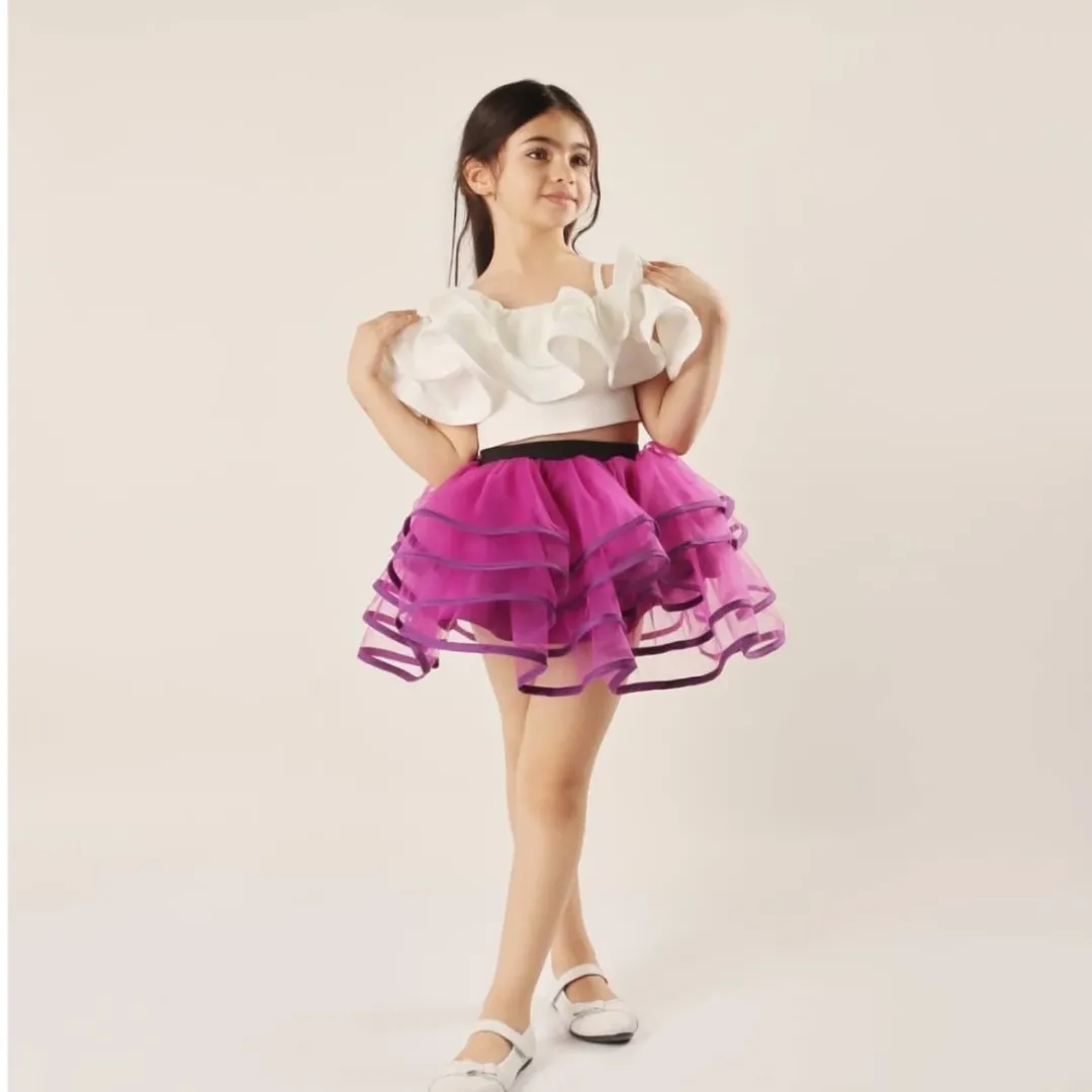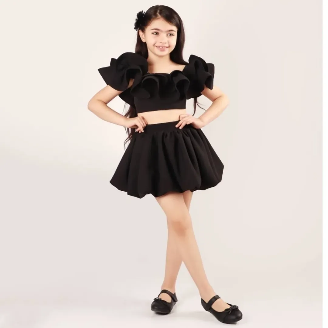 نیم تنه دلوین جنس کراپ مازراتی تمام استر استر از جنس تافته با یقه حلزونی از تور دبی مناسب سن ۱۲ سال.