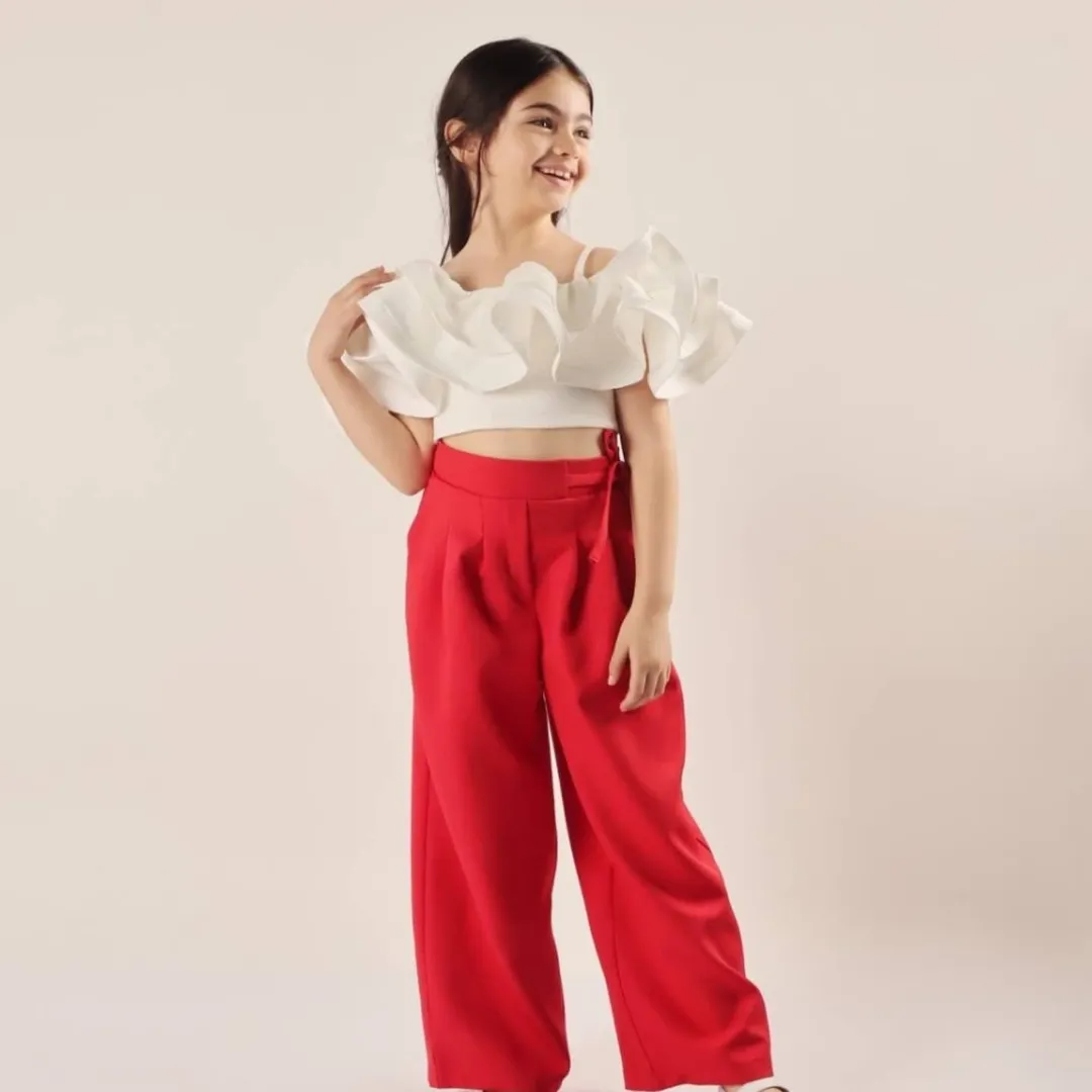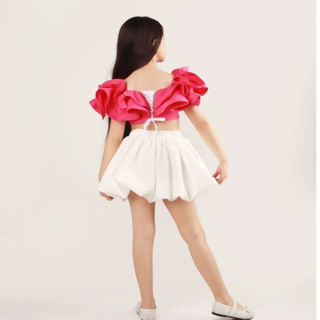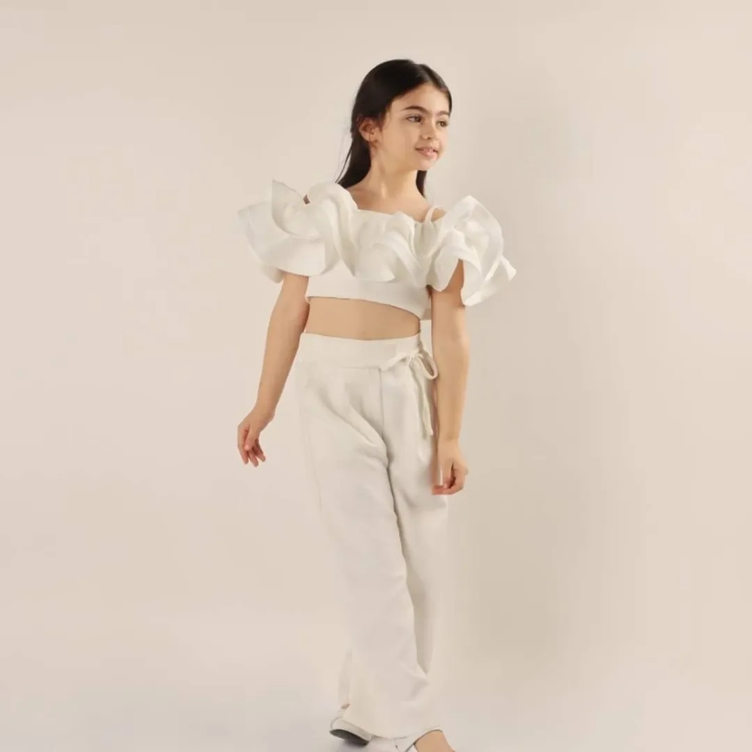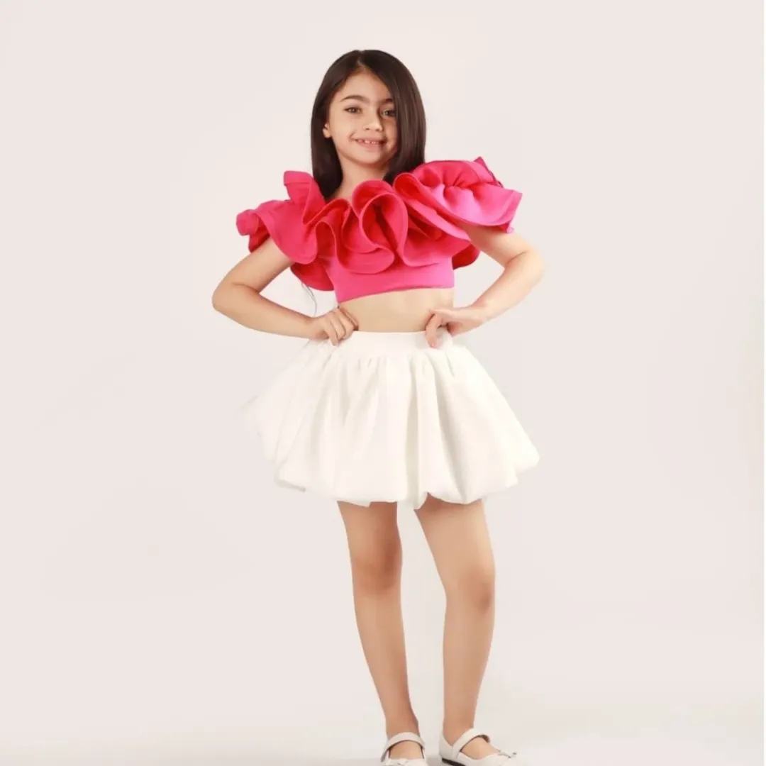نیم تنه دلوین جنس کراپ مازراتی تمام استر استر از جنس تافته با یقه حلزونی از تور دبی مناسب سن ۱۲ سال.