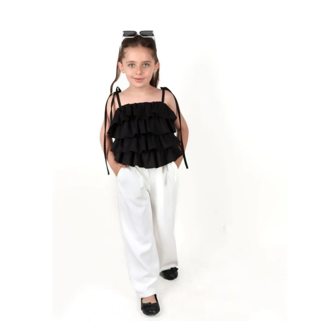 نیم تنه طبقاتی تاپ رنگ سفید و مشکی جنس سوپرسافت کجراه