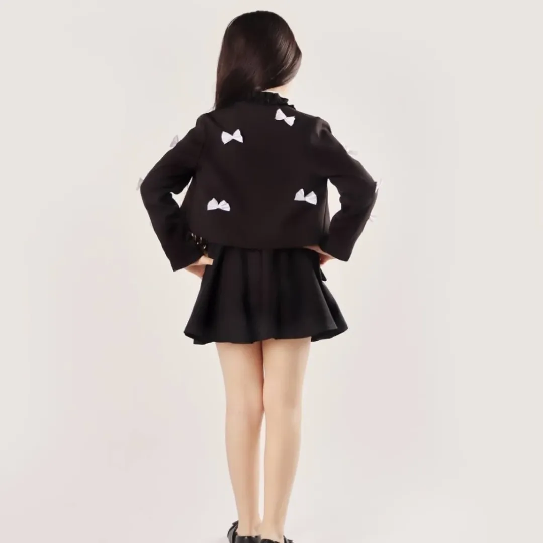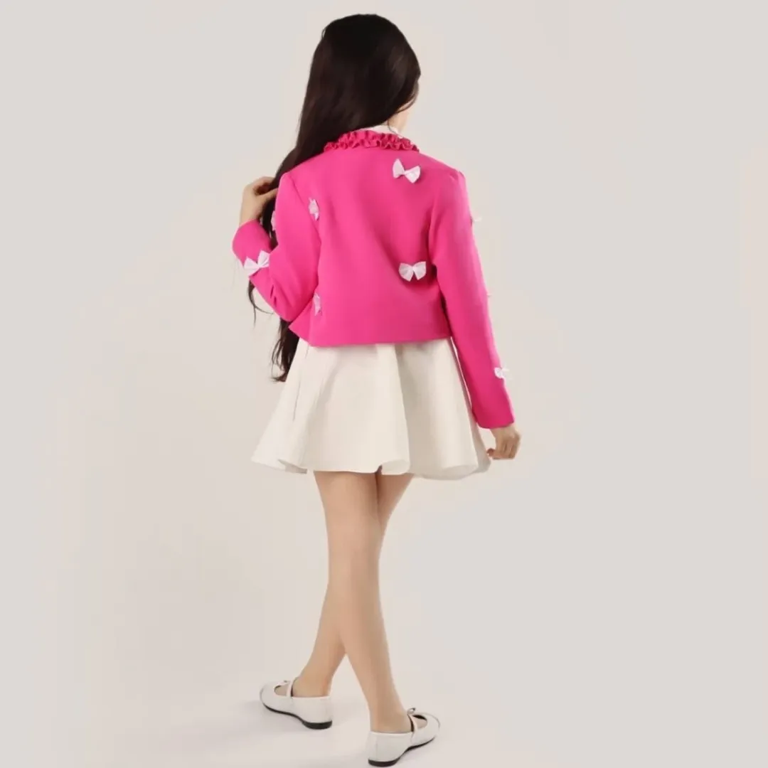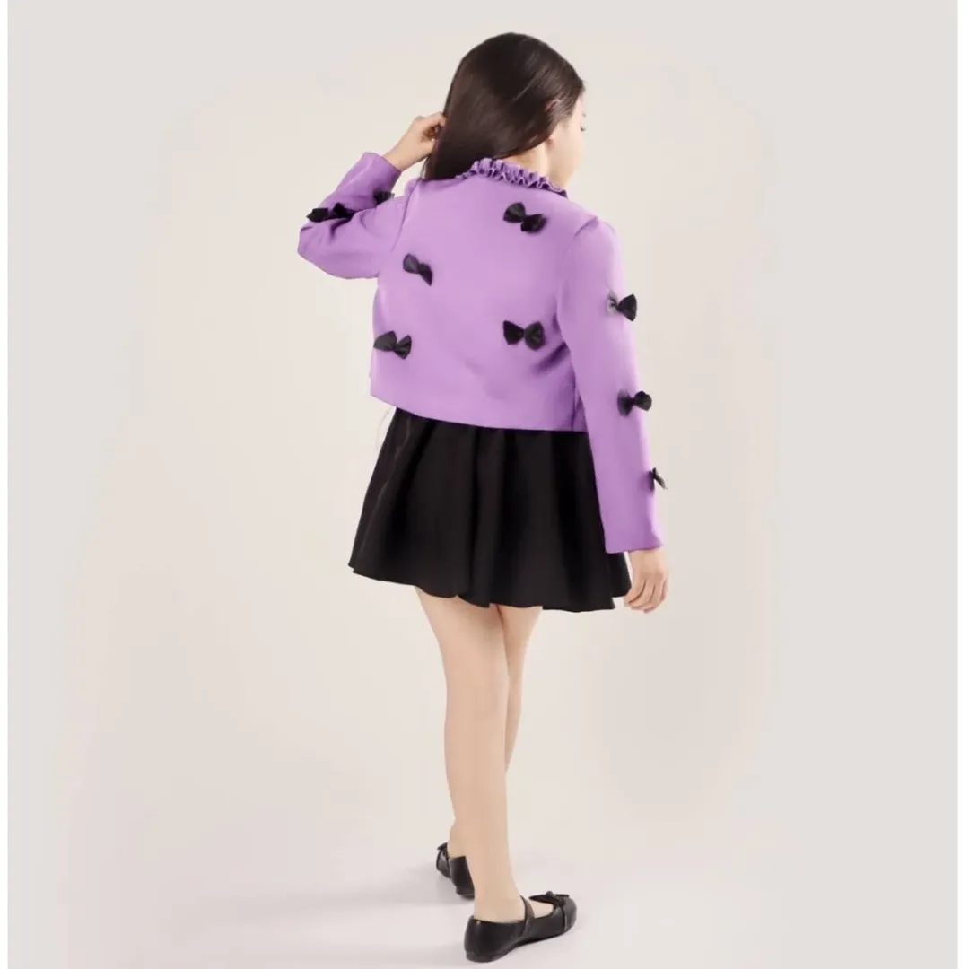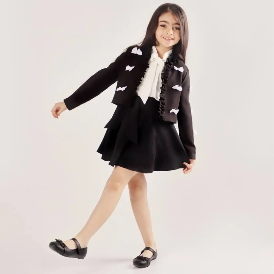 کت عروسکی آنیا جنس پارچه مازراتی جنس استر کت کراپی پونژه روی کت پاپیون دوخت شده رنگبندی: مناسب سن ۱۲ سال