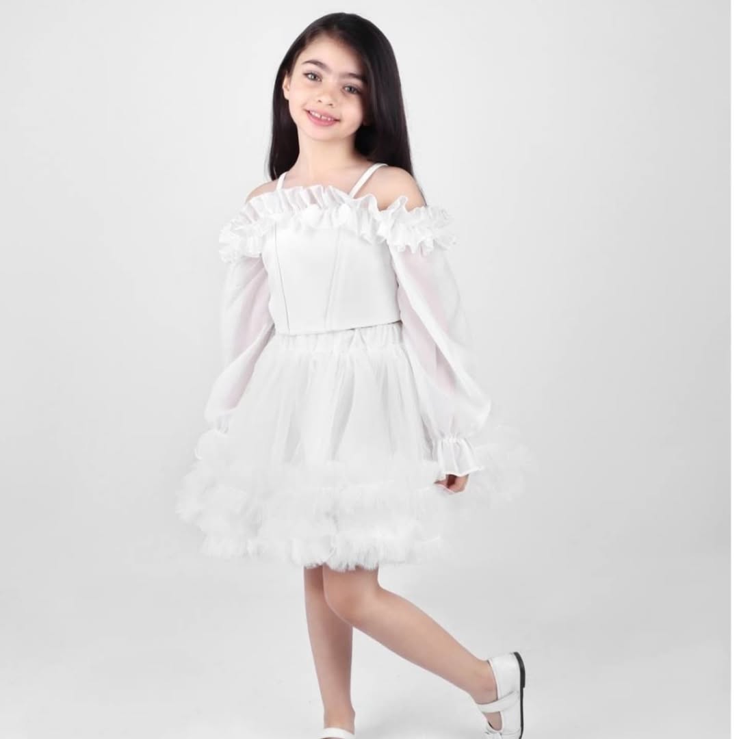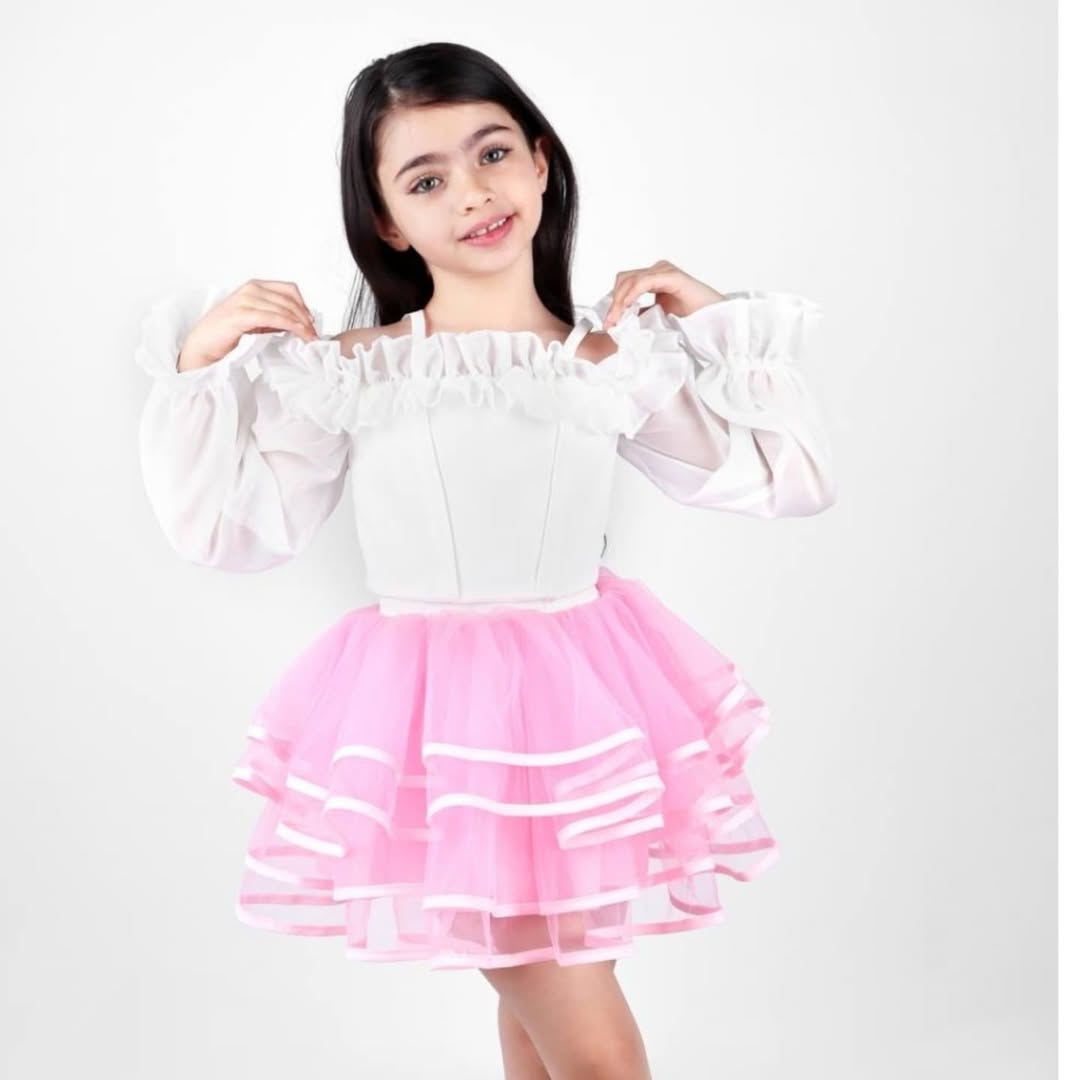 کراپ مجلسی جنس کراپ مازراتی و حریر تمام استر استر از جنس تافته پشت تاپ با بندینک قابل سایزبندی می باشد. مناسب سن ۱۲ سال.